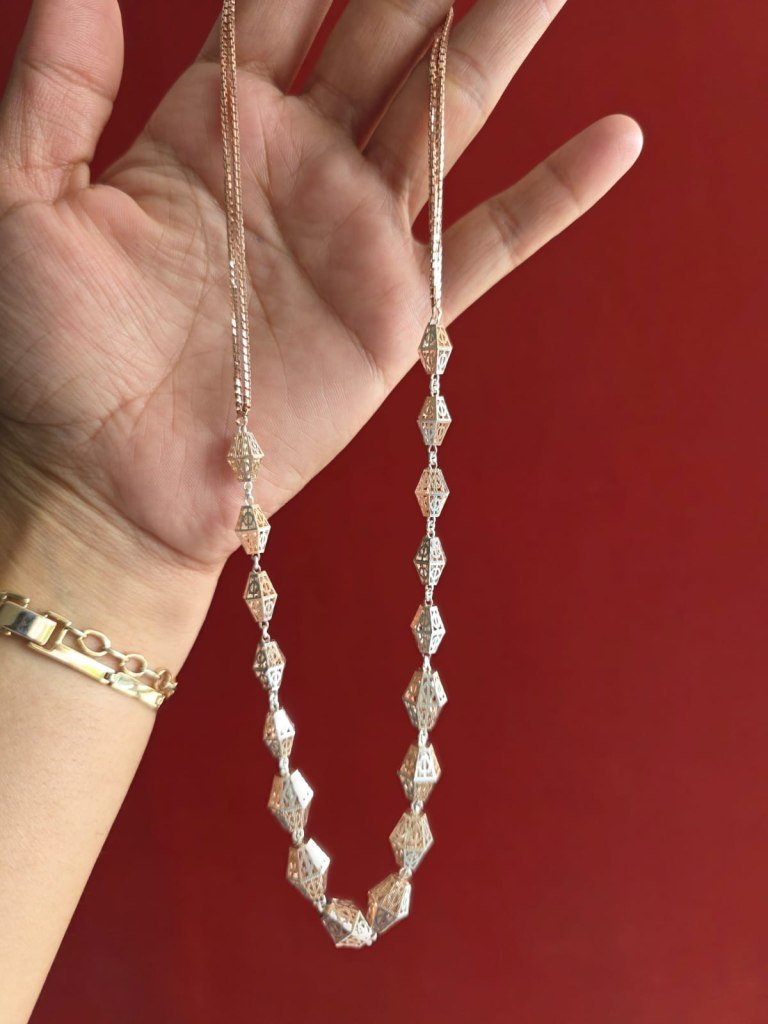 Divine Jewellery Dual Tone Geometric Filigree Bead Long Chain