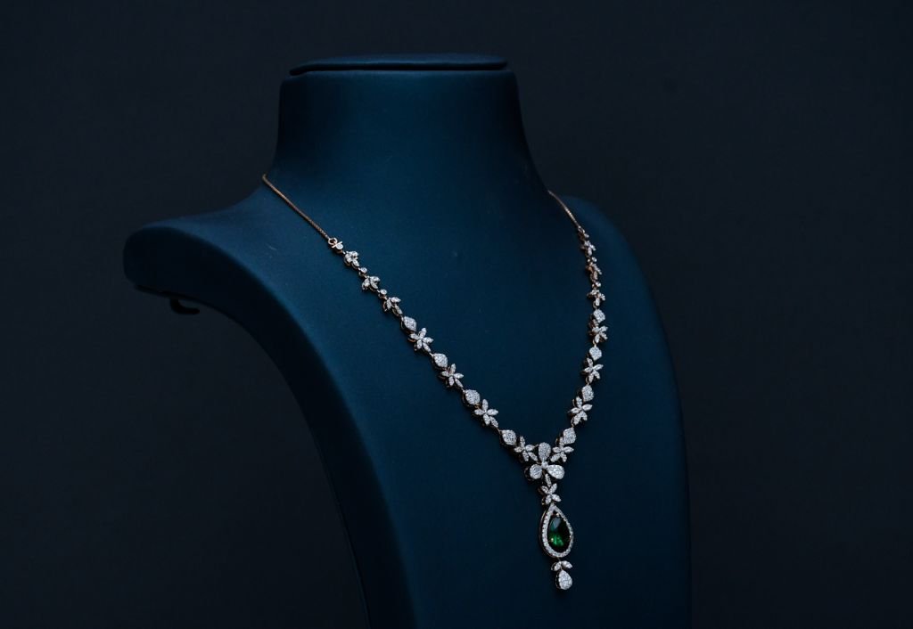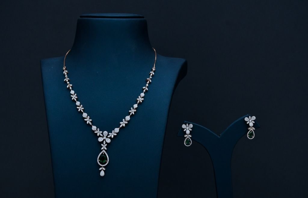 Divine Jewellery Emerald Teardrop Floral Diamond-Style Necklace Set