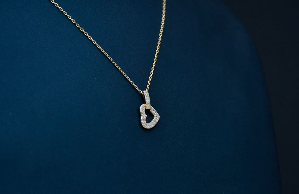 A delicate fine-chain necklace featuring an interlocked heart design with subtle crystal detailing.