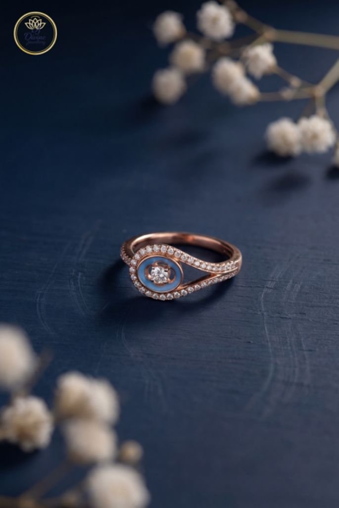 Divine Jewellery Rose Gold Blue Enamel Crystal Designer Ring