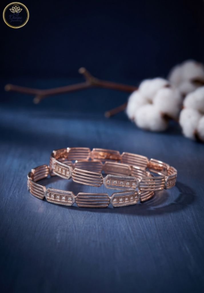 Divine Jewellery Rose Gold Crystal Link Designer Bangle Set