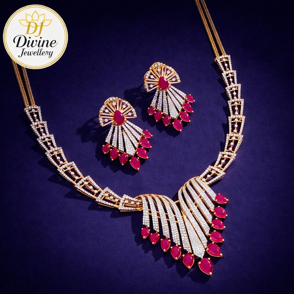 Divine Jewellery Royal Ruby-Red Fan Design Designer Necklace Set