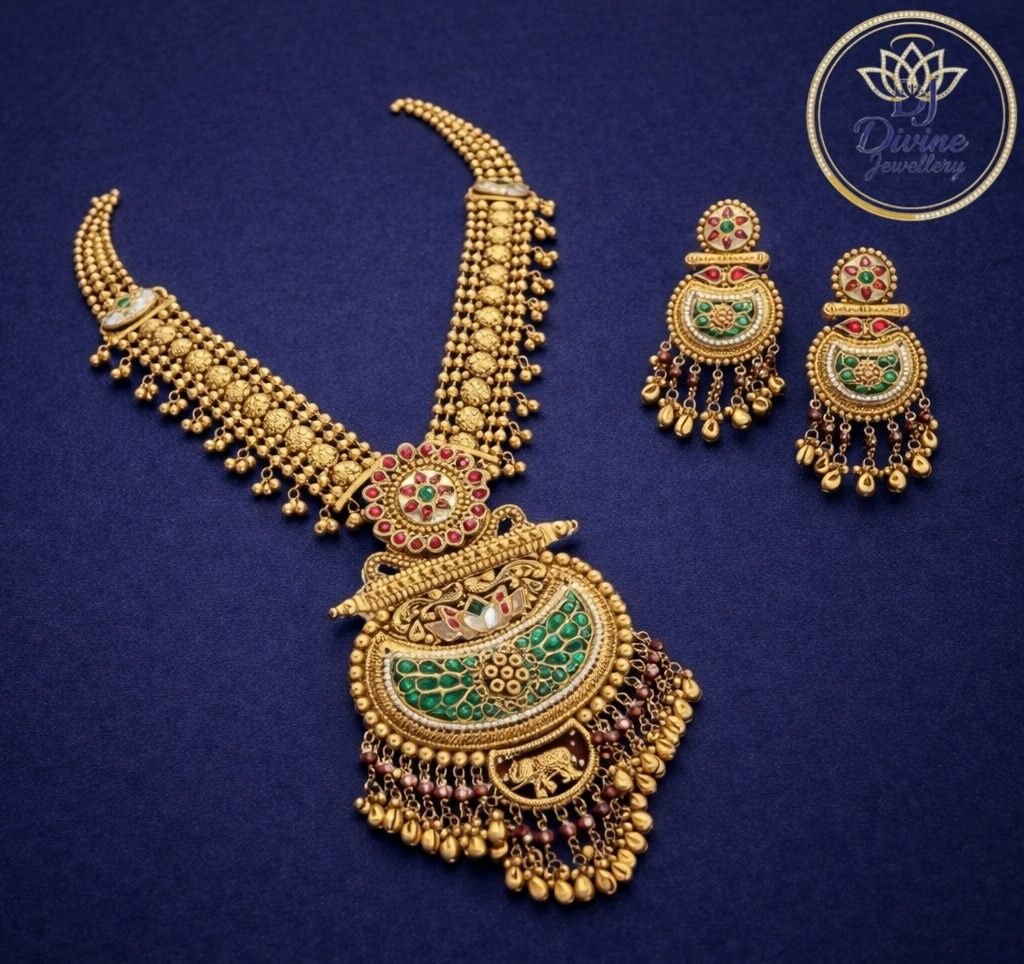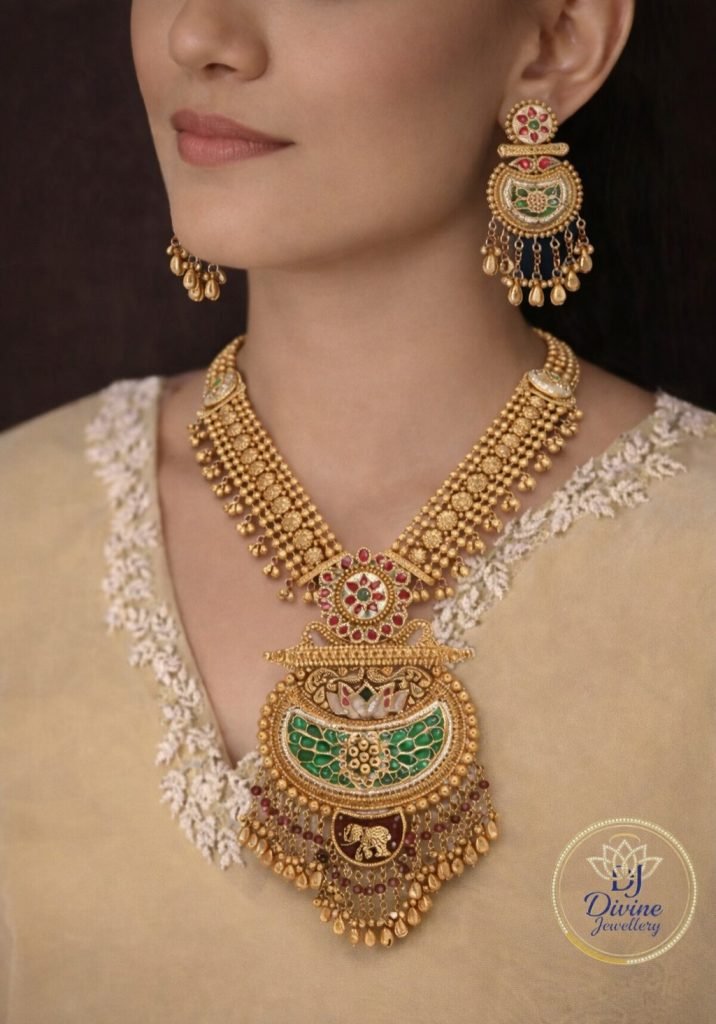 Divine Jewellery Royal Temple Elephant Heritage Necklace Set with Enamel Work