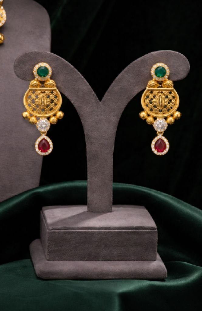 Elegant Antique Pendant Necklace Set with Multicolor Stones – 92.5 Silver Gold Plated Traditional Jewellery | Divine Jewellery