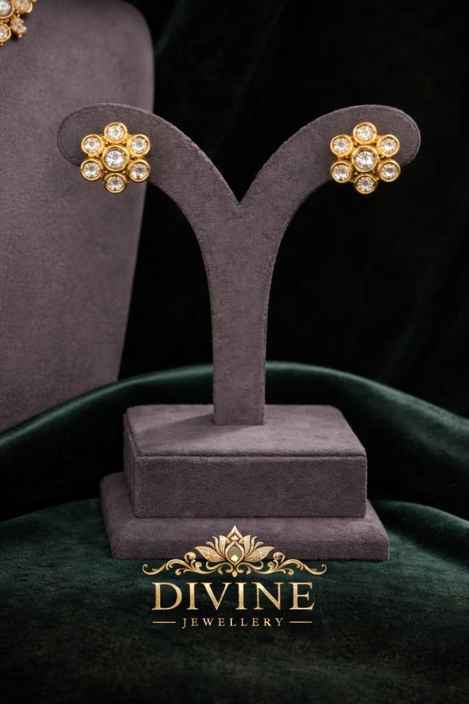 Elegant Pearl Kundan Choker Necklace Set with Oval Stones | 92.5 Silver Gold Plated Jewellery by Divine Jewellery