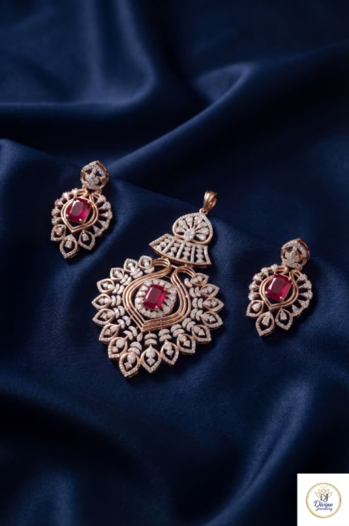 Elegant Ruby Pendant Set with Diamond Style Detailing in 92.5 Silver Gold Plated | Divine Jewellery
