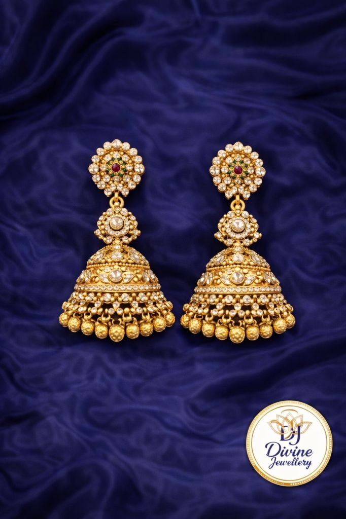 Emerald Rajwada Choker Necklace Set with Kundan Drops & Jhumka Earrings – 92.5 Silver Gold Plated Bridal Jewellery