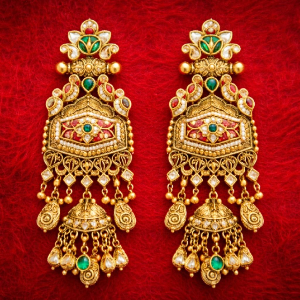 Grand Temple Bridal Necklace Set with Intricate Pendant & Earrings – 92.5 Silver Gold Plated Traditional Jewellery | Divine Jewellery