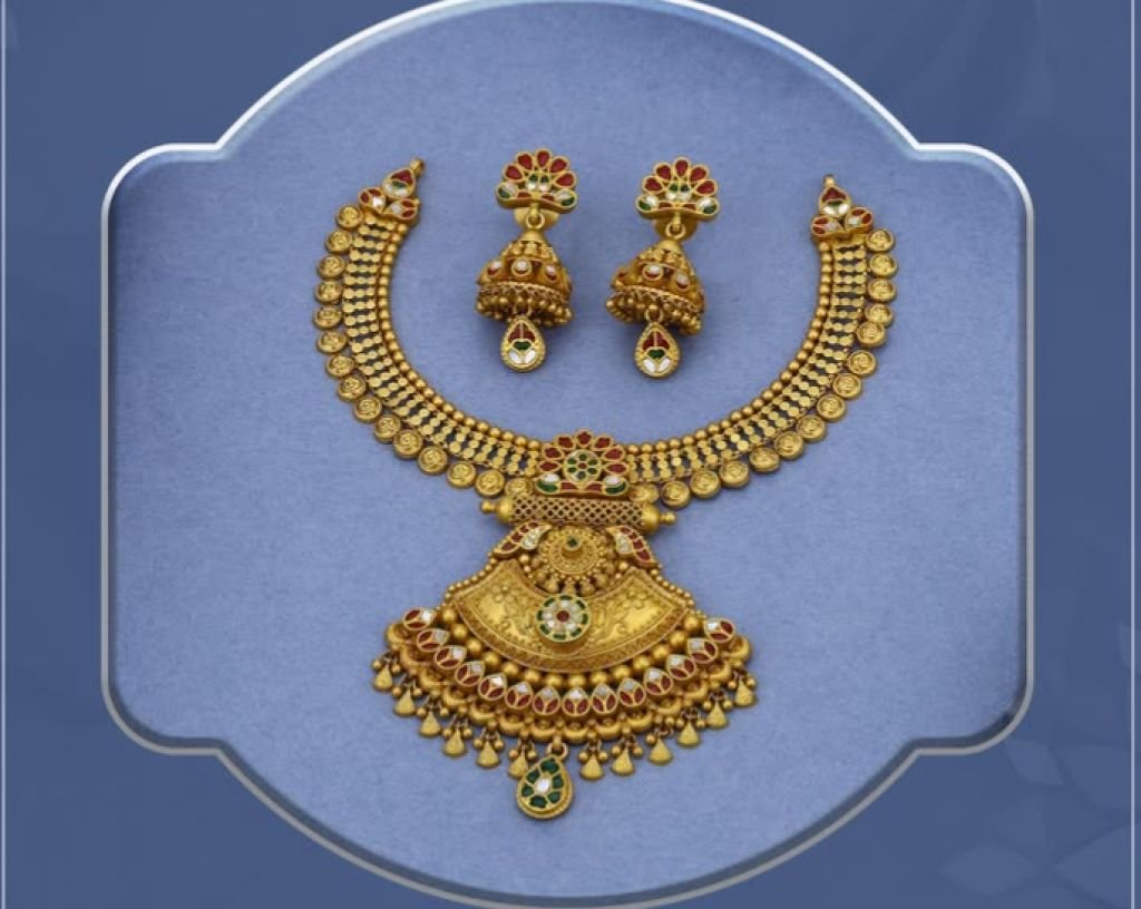 Grand Temple Lakshmi Design 92.5 Silver Gold-Plated Bridal Necklace Set with Jhumka Earrings