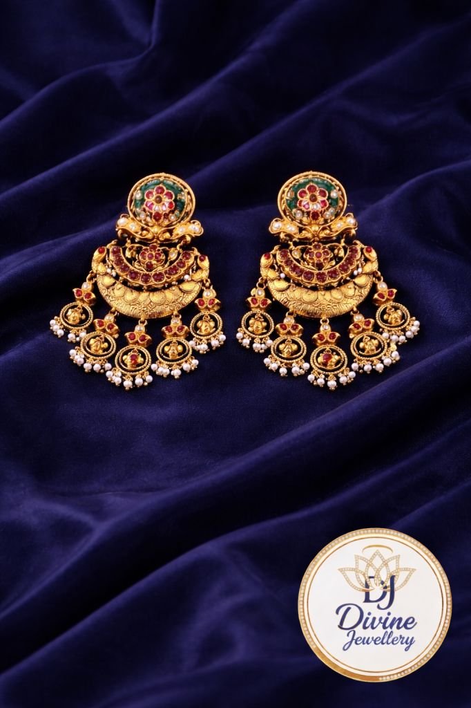 Grand Temple Long Haar Necklace Set with Jhumka Earrings – 92.5 Silver Gold Plated Bridal Heritage Jewellery