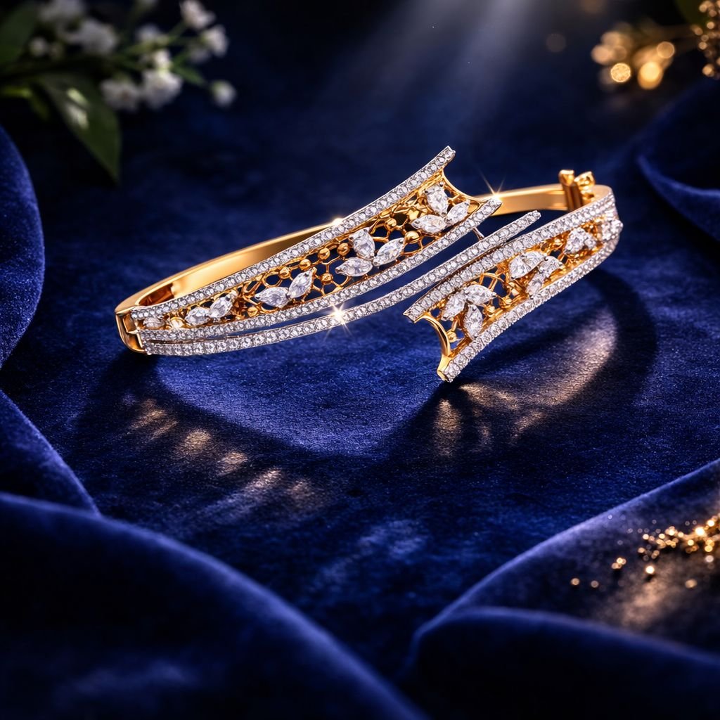 A sophisticated dual-line bracelet with floral diamond-style detailing, crafted in 92.5 silver with gold plating—perfect for modern luxury styling.