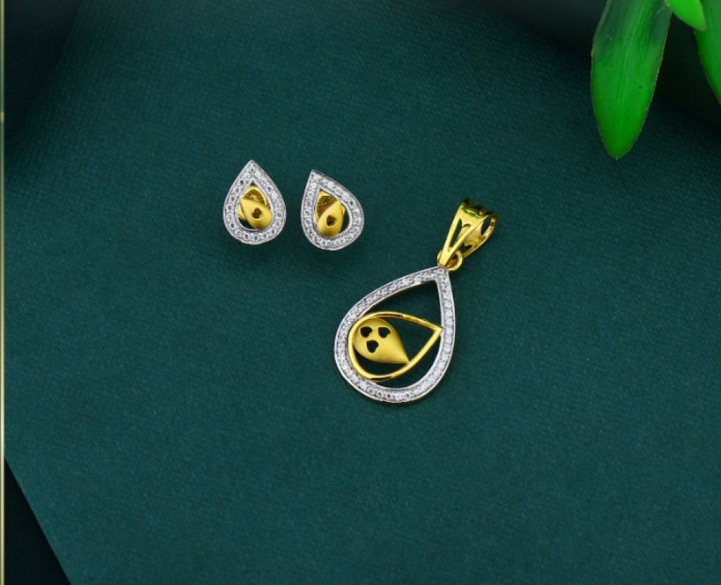 Elegant 92.5 silver gold-plated pendant set featuring teardrop design with CZ stones and dual-tone finish. Perfect for daily and party wear.