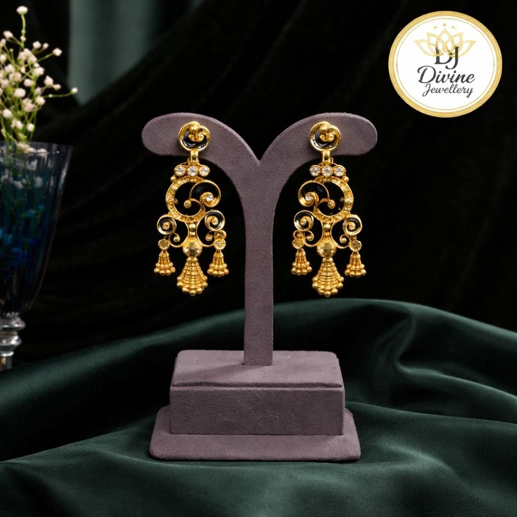 Modern Black Enamel Designer Choker Necklace Set with Gold Finish & Drop Detailing – 92.5 Silver Gold Plated