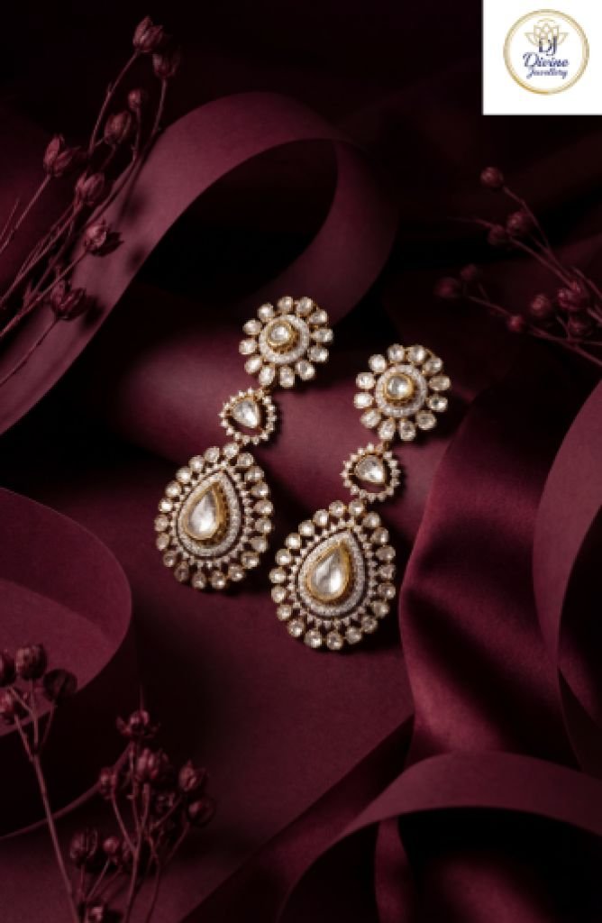 Polki Drop Bridal Earrings in 92.5 Silver Gold Plated – Divine Jewellery