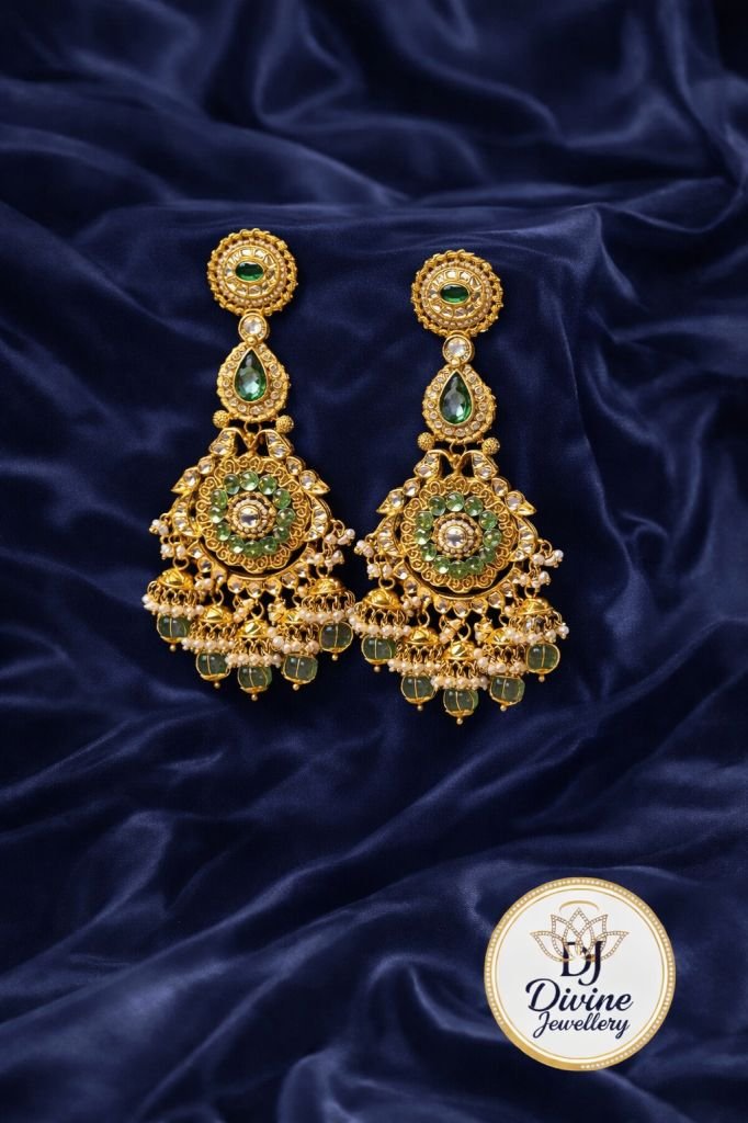 Royal Kundan Pendant Necklace with Green Stones & Pearl Danglings & Earrings – 92.5 Silver Gold Plated Long Necklace