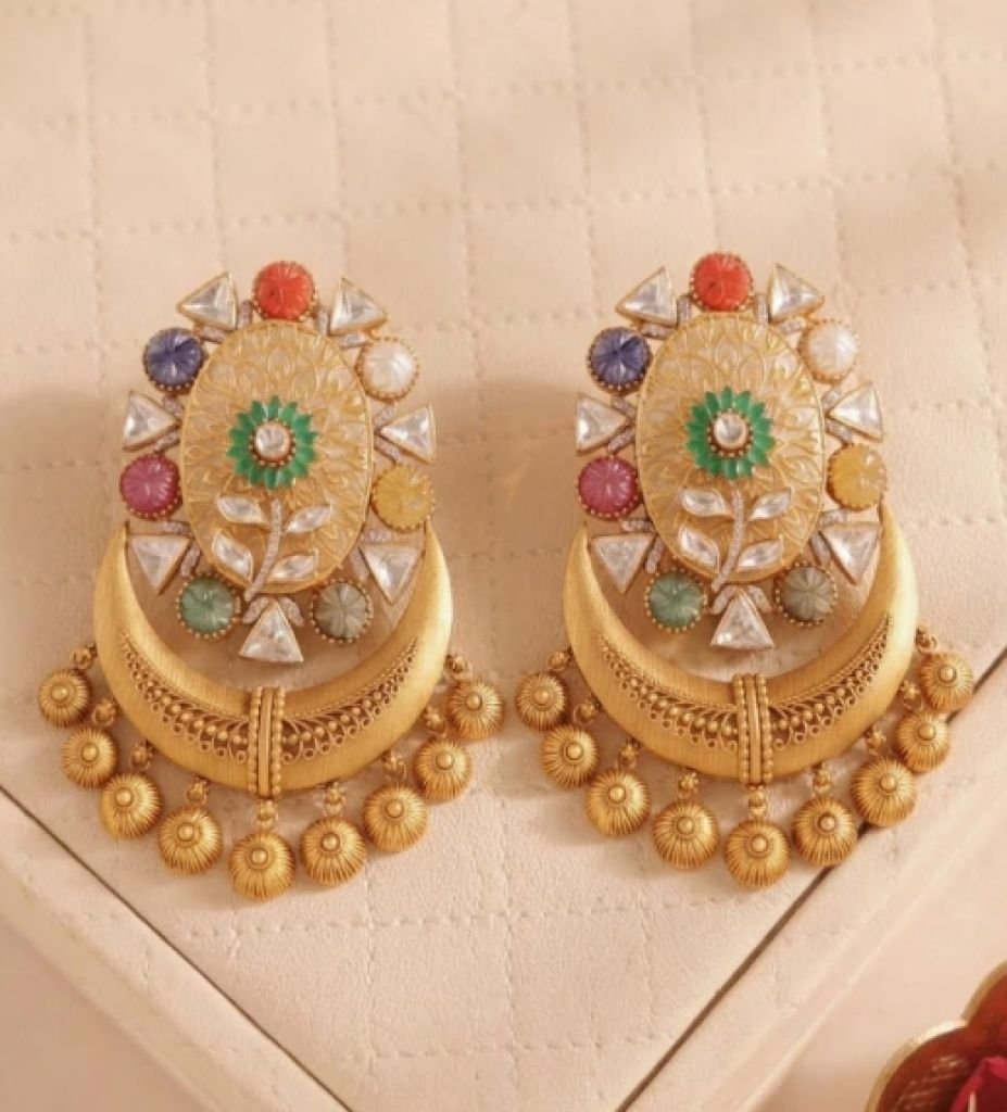 Royal Temple Floral Statement Necklace with Multi-Color Stones – 92.5 Silver Gold Plated Traditional Jewellery | Divine Jewellery