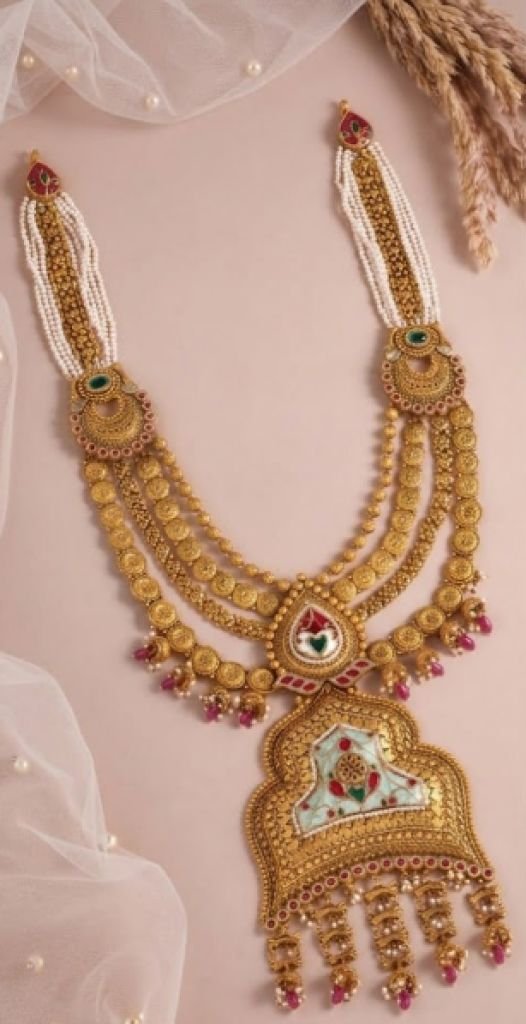Royal Temple Heritage Long Necklace Set with Jhumka Earrings – 92.5 Silver Gold Plated Bridal Jewellery | Divine Jewellery