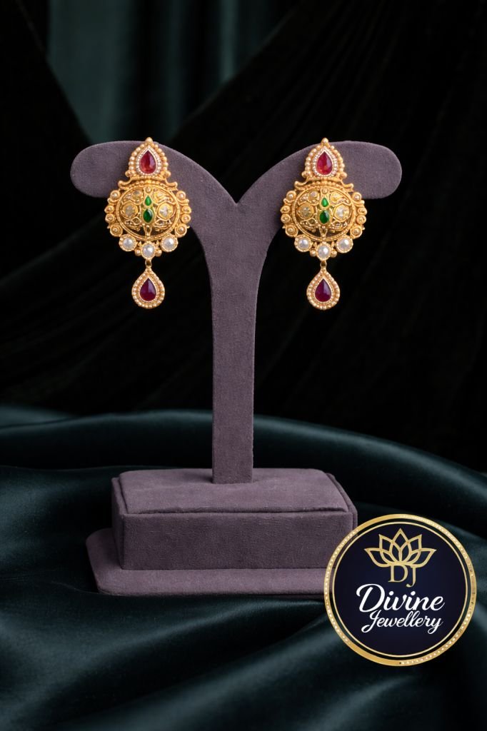 Royal Temple Long Necklace Set with Pearl Strands & Carved Pendant – 92.5 Silver Gold Plated