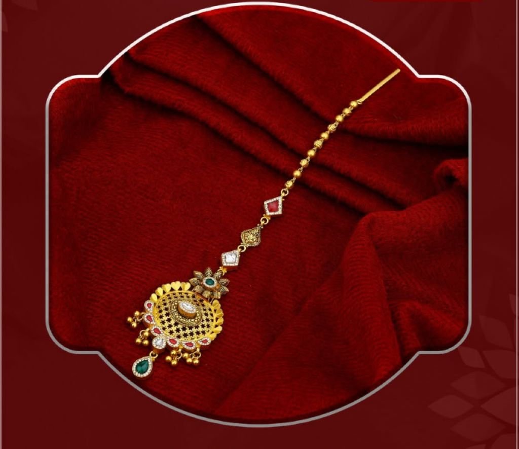 Temple Designer Maang Tikka in 92.5 Silver Gold Plated – Divine Jewellery