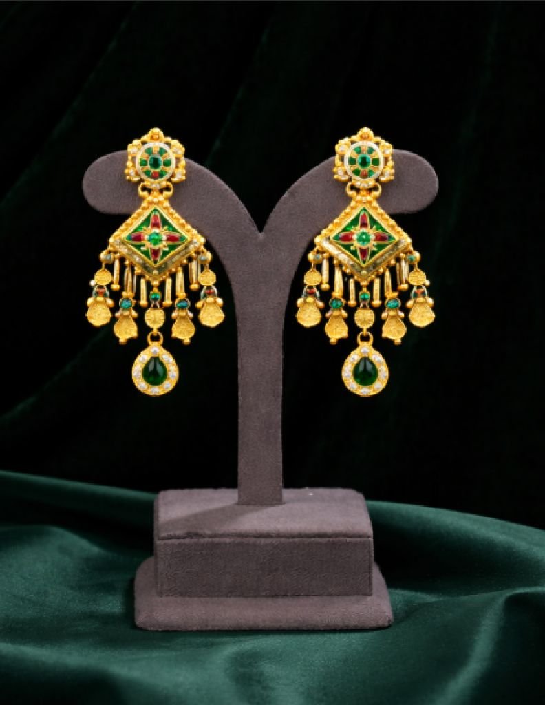 Elegant multilayer temple necklace with square centerpiece pendant and matching earrings, crafted in 92.5 silver with premium gold plating—perfect for festive and bridal wear.